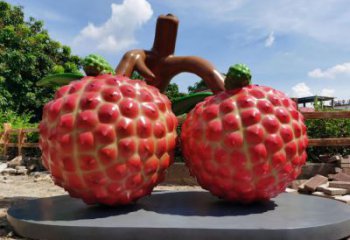 這是一座以兩個(gè)相連梨子為造型的玻璃鋼景觀雕塑,內(nèi)部有心形鏤空,可供人進(jìn)入休憩交流,色彩鮮亮,兼具美觀與實(shí)用。
